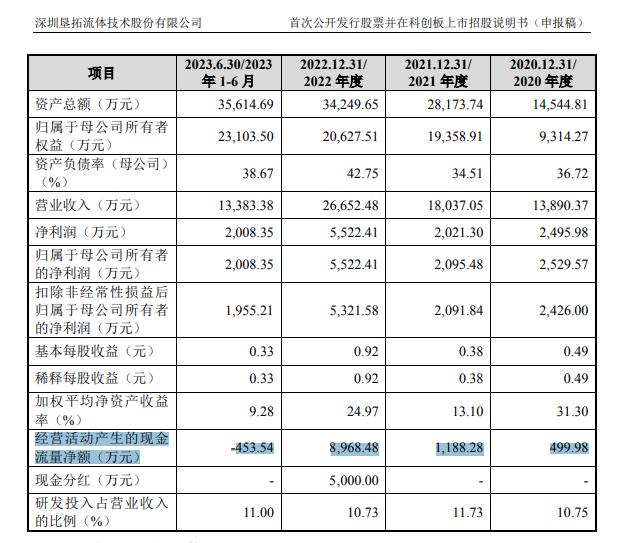 招股书显示,公司4名核心技术人员中,有3名来自迈瑞医疗(300760.SZ),曾在迈瑞医疗任工程师。其中,垦拓流体实控人张成合计控制公司60.8788%股份的表决权,或存在不当控制的风险。另外,截至2023年上半年,垦拓流体现金流已为负值,为-453.54万元。