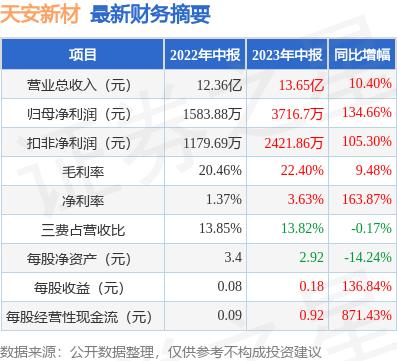 天安新材(603725)2023年中报简析:营收净利润双双增长,债务压力大