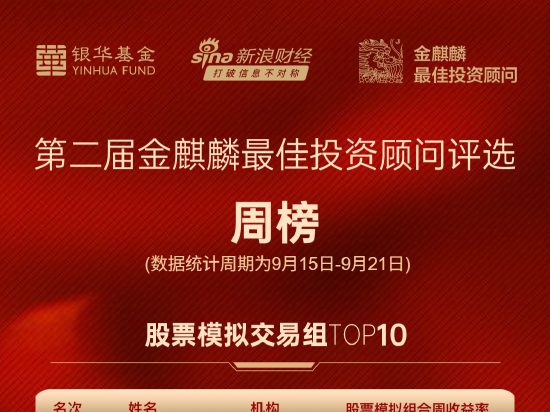 - 金麒麟最佳投顾评选周榜丨股票组申万宏源证券投顾张永强周收益15.48%居首位(全名单)【模拟排行榜总榜】直击专业选手实战大赛:谁能乘”牛市东风“荣摘桂冠? 【相关阅读】银华基金投顾每日观点 第二届金麒麟最佳投资顾问评选正式开赛,财富管理最后一公里,谁是优秀的“引路人”?新浪财经与银华基金共同寻找优秀投资顾问,赋能投顾IP建设,共建展业平台! 目前金麒麟最佳投资顾问评选火热进行中!股票模拟交易、场内ETF模拟交易、公募基金模拟配置、社交服务评比……万名投顾大PK,周榜数据(周期为9月15日-9月21日)显示,股票模拟组合评比申万宏源证券乌鲁木齐北京中路营业部投顾张永强以周收益率15.48%居周榜首位,其次国元证券棉纺东路证券营业部投顾李俭喜以周收益率13.84%居第二,东莞证券海城证券营业部投顾何健以周收益率13.25%居周榜第三。 股票组周榜明细如下: 名次 姓名 机构 所属营业部 周收益率 1 张永强 申万宏源证券 乌鲁木齐北京中路证券营业部 15.48% 2 李俭喜 国元证券 棉纺东路证券营业部新浪证券