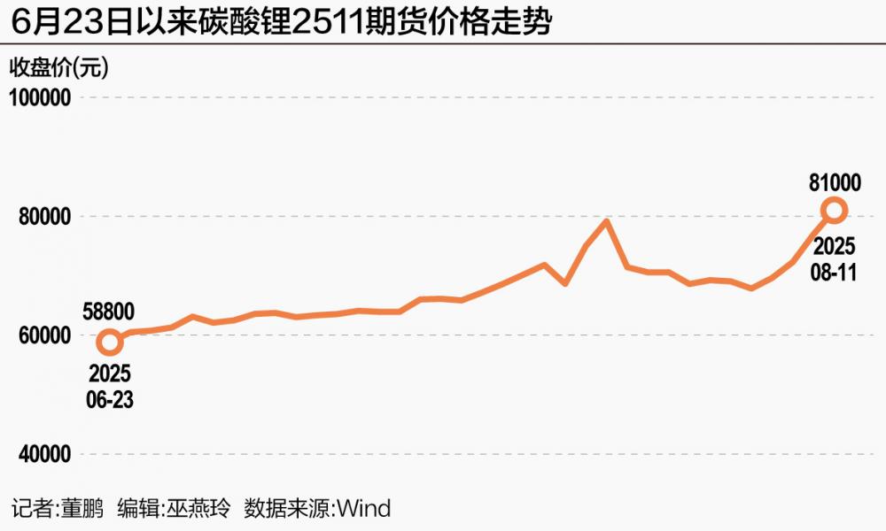 - 宁德时代旗下锂矿停产引爆市场 碳酸锂期、现、股联动大涨宁德时代枧下窝矿停产消息的证实,再次点燃了市场做多锂价的情绪。8月11日,宁德时代在互动平台表示,公司在宜春项目采矿许可证8月9日到期后已暂停了开采作业,正按相关规定尽快办理采矿证延续申请,待获得批复后将尽早恢复生产,该事项对公司整体经营影响不大。受到上述消息刺激,除了即将交割的LC2508合约以外,其他碳酸锂期货合约全部涨停,并带动国内碳酸锂现货、锂矿股全线上涨,赣锋锂业H股盘中涨幅更是一度超过20%。值得关注的是,市场资金对碳酸锂期货的炒作力度已提升。仅以衡量其投机度高低的成交持仓比指标为例,“老主力”LC2509合约便由6月下旬的1倍以下提升至7月24日的4倍,此后受到交易所调控、“移仓换月”的影响,该指标回落至2倍以下。不过,在上周部分资金回流大宗商品市场环境下,“新主力”LC2511合约的成交持仓比再次显著回升至2.8倍左右。交投活跃度的提升,一定程度上也放大了碳酸锂期货的涨跌幅度,与之相挂钩的现货、股票市场波动风险随21世纪经济报道