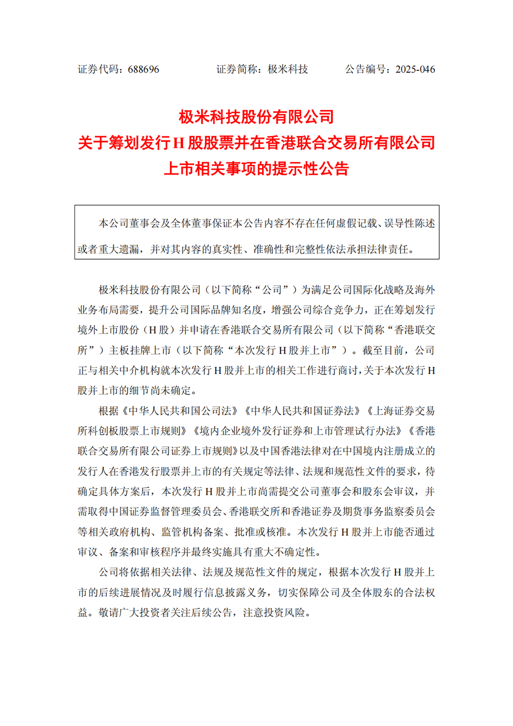 - 极米科技赴港上市,能靠出海破解增长困局吗?8月4日晚间,极米科技(688696.SH)发布公告,宣布正筹划发行境外上市股份(H股)并申请在香港联交所主板挂牌上市。若进展顺利,极米科技有望成为四川省又一家实现“A+H”双资本平台布局的上市公司,进一步强化其全球化战略的资本支撑。 公开资料显示,成都极米科技股份有限公司成立于2013年,专注于智能投影产品的研发、生产及销售业务。2018年获百度投资,并首次超越索尼、爱普生,成为中国投影市场出货量第一(57.5万台,市占13.2%),此后持续领跑,并连续六年保持出货量第一、四年蝉联出货量及销售额双冠。极米科技在公告中明确表示,此次赴港上市旨在满足公司国际化战略及海外业务布局需求,提升国际品牌影响力。作为中国投影设备市场的绝对领导者,极米科技近年来加速推进品牌出海,而H股上市将为其提供更便捷的国际融资渠道,同时增强海外合作伙伴与消费者的信任度。值得注意的是,极米科技2021年登陆科创板时,便以“硬科技”属性备受艾肯家电网