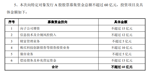 - 东吴证券拟定增募资60亿元,上半年股权承销项目“颗粒无收”2025年07月28日 11:52:13近日,随着券商再融资松绑,东吴证券也发布了定增预案。公告显示,公司拟向特定对象发行不超过14.91亿股,募集资金总额不超过60亿元。其中,控股股东苏州国际发展集团有限公司及其一致行动人苏州营财投资集团有限公司分别认购15亿元和5亿元。此次定增拟投向六个项目,包括向子公司增资、信息技术及合规风控投入、财富管理业务、购买科技创新债券等债券投资业务、做市业务、以及偿还债务及补充营运资金。 公司表示在当前以净资本和流动性为核心的监管体系下,资本实力依然是证券公司增强竞争优势的关键要素之一。公司拟通过本次向特定对象发行A股股票的方式募集资金,用于增加公司资本金,进一步优化公司业务结构,提升公司的市场竞争力和风险抵御能力,同时更好的为股东创造更大价值。累计募资或超320亿元东吴证券成立于1993年,前身为苏州证券,也是苏州地区唯⼀的法⼈证券公司。2011年12月12日,东吴证券在上海A股伪解释