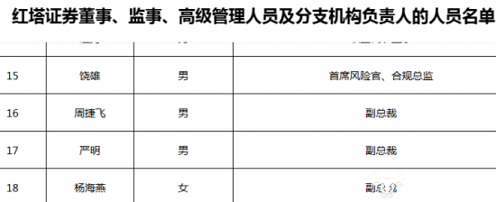 - 红塔证券合规总监饶雄去年薪酬大涨 高达93.22 万元运营商财经网 实习生付桢/文日前,运营商财经网在整理时发现,在红塔证券的官方网站上,公司首席风险官、合规总监饶雄,位列其他副总经理之前,引人关注。 公开资料显示,饶雄出生于 1970 年 8 月,也快要55岁了。他的学历很高,拥有材料物理学博士学位。其职业生涯起步于,云南省水利水电设计研究院,1992 年至 1994 年间,担任助理工程师。值得关注的是,不知为何,他在此后的五年间,并没有工作经历。结合他的博士学位,运营商财经网推测,他可能在此期间,攻读了硕士和博士。但是短短五年间,就攻读完理工科硕博,还是十分艰难的。此后,饶雄投身金融领域。1999 年 3 月加入东方证券,任研究所研究员。两年后,他加入了鹏华基金投资管理部,任高级研究员。一年后,他转至银河基金,出任基金经理并成为投资决策委员会委员,开始在基金运作与决策层面崭露头角。2004 年 7 月,加盟红塔证券,历任总裁助理兼投资管理总部总经理、投资总运营商财经网