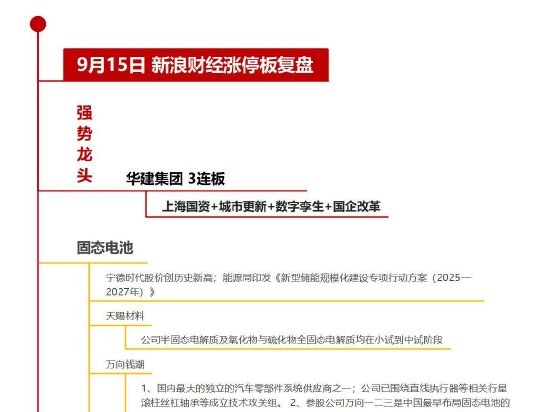 - 9月15日沪深两市涨停分析:华建集团3连板创业板指冲高回落涨1.52%,宁德时代大涨9%创新高,汽车产业链全线爆发。华建集团3连板,一图看懂>>股市直击