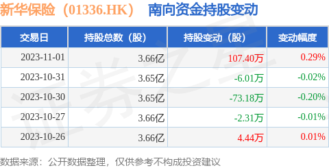 - 新华保险(01336.HK):11月1日南向资金增持107.4万股证券之星消息,11月1日南向资金增持107.4万股新华保险(01336.HK)。近5个交易日中,获南向资金增持的有2天,累计净增持30.34万股。近20个交易日中,获南向资金减持的有14天,累计净减持688.64万股。截至目前,南向资金持有新华保险(01336.HK)3.66亿股,占公司已发行普通股的35.42%。 新华人寿保险股份有限公司是中国一家人寿保险公司。该公司主营业务为个人寿险和团体寿险,以及财富管理业务。该公司个人寿险产品包括传统型寿险、分红型寿险、万能寿险、投资连结型保险、健康险及意外险。其团体保险产品包括集体人寿保险、健康保险和意外伤害保险。该公司还通过其子公司从事保险代理业务。该公司主要通过保险营销员和银行销售其保险产品。以上内容由证券之星根据公开信息整理,由算法生成,与本站立场无关。证券之星力求但不保证该信息(包括但不限于文字、视频、音频、数据及图表)全部或者部分内容的的准确性、完整性、有效证券之星