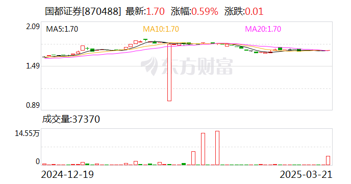 - 国都证券3000万股一拍“落槌” 浙商证券斥资超5700万元竞得3月23日,国都证券股份有限公司(以下简称“国都证券”)3000万股股份拍卖被浙商证券股份有限公司(以下简称“浙商证券”)以5704.2万元竞得,这是浙商证券战略布局的重要一步。 公开信息显示,上述拍卖的标的为国都证券不限售流通股3000万股,市场价为5088万元,起拍价为4579.2万元,共有5位竞买人参与。 竞买记录显示,该次拍卖共经历156次出价,最终浙商证券在上海市闵行区人民法院于阿里拍卖平台开展的“被执行人名下持有的北交所三板市场,股票号为870488国都证券不限售流通股3000万股”项目公开竞价中,以最高应价胜出。该次拍卖的网络拍卖成交价格为5704.2万元,较起拍价溢价24.57%;折合1.9元/股,较国都证券3月21日收盘价1.7元/股溢价约11.8%。 作为证券行业中备受关注的一起并购重组,“浙商证券+国都证券”整合持续推进。回顾收购历程,2024年3月29日,浙商证券与重庆国际信托股份有限公司、天津重信科技发证券日报之声