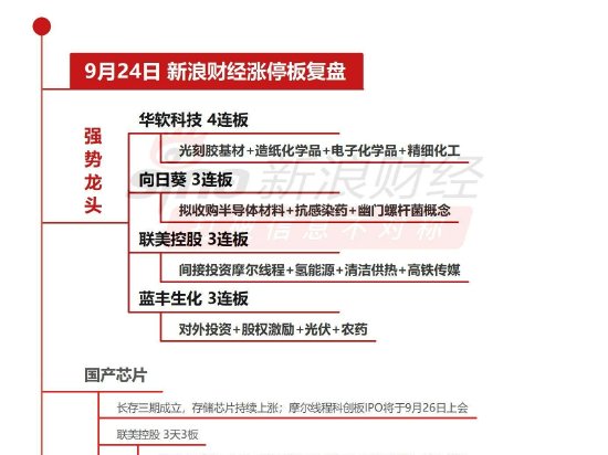 - 9月24日沪深两市涨停分析:华软科技4连板创业板指低开高走涨2.28%再创3年多新高,半导体芯片股掀起涨停潮。华软科技4连板,一图看懂>>股市直击