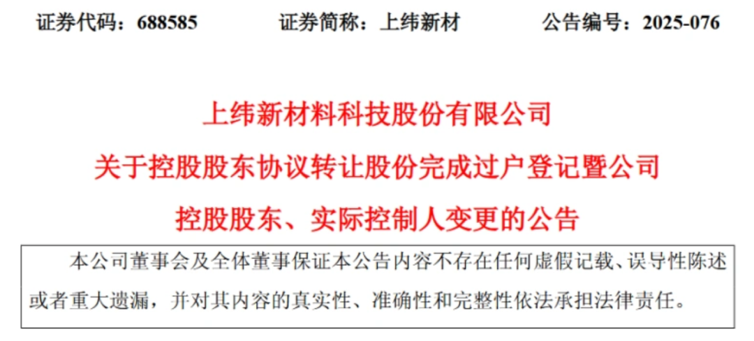 - 上纬新材正式易主!智元机器人团队或将浮盈超200亿元,48岁新实控人毕业于电子科技大学,曾任华为副总裁“十倍牛股”上纬新材正式易主!智元机器人团队或将浮盈超200亿元,48岁新实控人毕业于电子科技大学,曾任华为副总裁 每经记者|黄海 每经编辑|陈柯名 魏官红 “十倍牛股”上纬新材正式易主! 9月23日盘后,上纬新材(688585.SH,股价91.73元,市值370亿元)披露公告称,公司已于9月23日收到股东SWANCORIND.CO.,LTD.(Samoa)(以下简称SWANCOR萨摩亚)、Strategic Capital Holding Limited(Samoa)(以下简称STRATEGIC萨摩亚)及金风投资控股有限公司(以下简称金风投控)的通知,其协议转让公司股份事宜已完成过户登记手续。 原股东完成股份转让后,上海智元恒岳科技合伙企业(有限合伙)(以下简称智元恒岳)和上海致远新创科技设备合伙企业(有限合伙)每日经济新闻