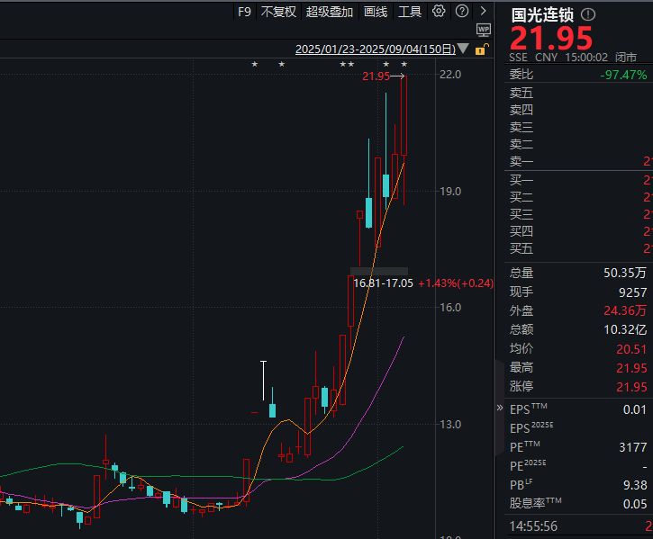 - 拟合计减持不超2.99%!股价一个月翻倍创新高后,国光连锁实控人兄妹拟高位套现每经记者|蔡鼎 “牛股”国光连锁(605188.SH,股价21.95元,市值110.05亿元)9月4日晚间公告称,公司实控人之一兼董事长胡金根拟通过集中竞价或大宗交易方式,减持公司股份不超过1250.6万股,占公司股本总数不超过2.49%。公司实控人之一兼董事、副总经理胡春香拟通过集中竞价交易方式,减持公司股份不超过250.6万股,占公司股本总数不超过0.5%。二人合计拟减持不超过2.99%股份。 公告显示,胡金根和胡春香二人为兄妹关系,减持原因均是“个人自身资金需求”,减持期间为2025年9月26日—12月25日。不过,本次减持计划实施不会导致公司控制权发生变更,不会对公司治理结构、持续经营等产生重大影响。此外,这是国光连锁2018年上市以来,胡金根和胡春香披露的首个减持计划。 资料显示,国光连锁成立于2005年11月,总部位于江西省吉安市,主营业务为连锁超市、百货商场的经营,门店分布于吉安市、赣州市和宜春市,每日经济新闻