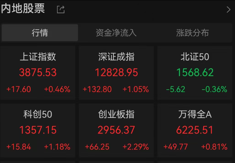 - A股超3200股飘红,半导体拉升,寒武纪下跌,黄金股集体爆发记者丨江佩霞 编辑丨曾静娇 9月1日,截至收盘,创业板指涨2.29%。深证成指涨幅扩大至1%,上证指数涨0.46%,沪深京三市超3200股飘红,成交额超2.78万亿元。 板块方面,半导体、 SFC 出品 | 21财经客户端 南财快讯工作室 21君荐读 寒武纪市值1日蒸发400亿,85后中科大天才,身家1800亿 5天4板!2倍大牛股辟谣:不是英伟达供应商 A股英伟达产业链狂奔,大牛股飙升5倍责任编辑:刘万里 SF01421世纪经济报道