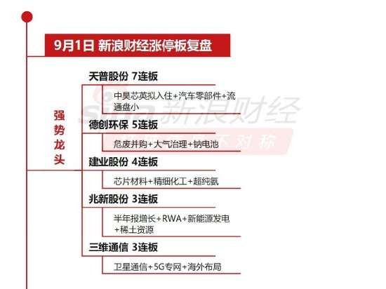 - 9月1日沪深两市涨停分析:天普股份7连板 德创环保5连板【9月1日沪深两市涨停分析】创业板指缩量大涨2.29%再创年内新高!黄金、医药概念全线爆发,AI硬件概念持续走强。天普股份7连板,德创环保5连板,一图看懂>>股市直击