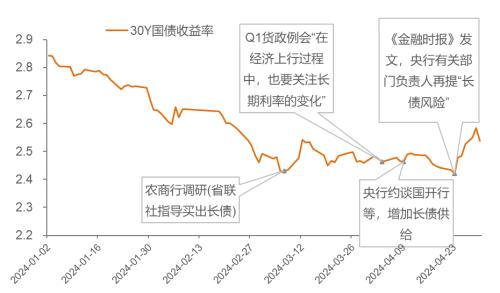 2024年以来管理层四次表态涉及超长债利率(%)