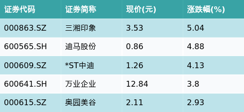 南方财经6月11日电,南财金融终端显示,今日房地产开发主题走弱,截至午间收盘(下同)下跌0.46%。持有房地产开发主题股票的华夏中证全指房地产ETF(515060)早盘下跌0.16%,最新价报0.628元。截至上个交易日(6月7日),该基金近五个交易日净值(复权单位净值,下同)下跌2.05%,近一个月净值上涨1.22%。该基金自(20191128)成立以来净值增长率为-37.03%,管理人为华夏基金管理有限公司,基金经理为李俊。截至午间收盘,房地产开发主题涨跌幅最高的五只股票为:三湘印象(000863.SZ)、迪马股份(600565.SH)、*ST中迪(000609.SZ)、万业企业(600641.SH)与奥园美谷(000615.SZ)。详情见下表: