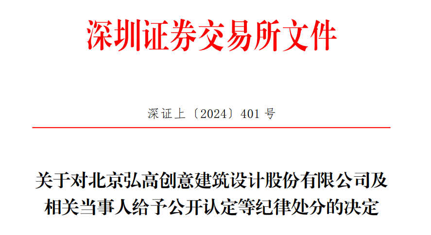 乐居财经 邓如菲 6月7日,深交所发布关于对北京弘高创意建筑设计股份有限公司(以下简称“*ST弘高”)及相关当事人给予公开认定等纪律处分的决定。