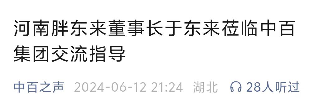 6月12日晚间,中百集团(000759.SZ)官微发布《河南胖东来董事长于东来莅临中百集团交流指导》的推文,内容显示,就中百集团转型发展遇到的问题,于东来从亏损门店闭店止损、优势门店经营调整、商品品质把控提升三方面提出了指导建议。