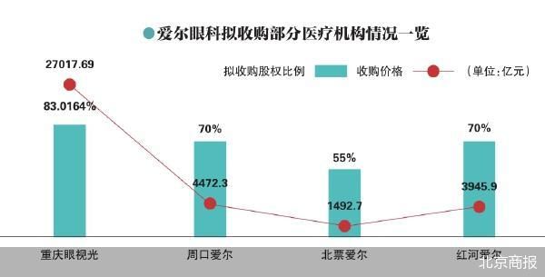 此外,爱尔眼科表示,截至2023年12月31日,公司通过自建和收购眼科医院的方式基本实现了在全国大中城市的布局。为抓住医疗行业发展的良好机遇,在未来竞争中占得先机,公司需要进一步深化“分级连锁”发展模式,逐步实现“横向成片、纵向成网”的拓展,加快完善网点布局,扩大市场覆盖范围。公司拟通过本次交易收购多家眼科医院,加快全国网络建设步伐,完善网点布局,为公司持续、快速、健康发展提供坚实的基础,加强与巩固自身眼科医疗市场的领先地位。针对公司相关问题,北京商报记者向爱尔眼科方面发去采访函,不过截至记者发稿,未收到公司回复。