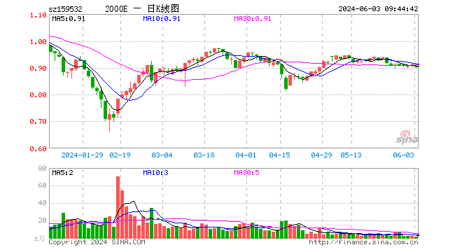 中证2000指数ETF(159532)开盘跌0.33%,重仓股通化金马跌0.06%,福瑞股份跌0.08%