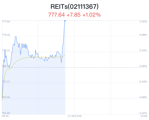 06月14日,REITs概念盘中拉升,截至11点15分,REITs概念整体指数上涨1.02%,报777.640点。