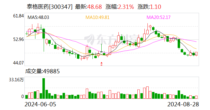 泰格医药:2024年半年度净利润约4.93亿元,同比下降64.5%