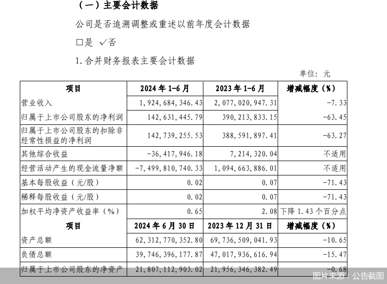 国海证券2024年半年报:归母净利润1.43亿元,同比减少63.45%