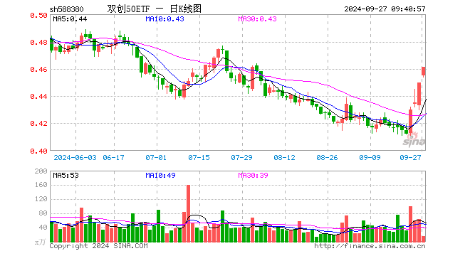 双创50ETF(588380)开盘涨1.11%,重仓股宁德时代涨3.16%,迈瑞医疗涨3.21%