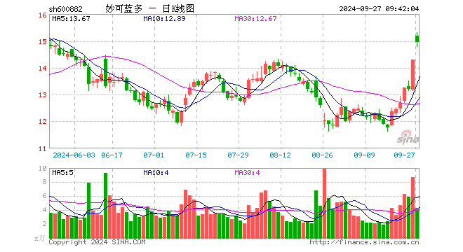 9月27日,妙可蓝多开盘涨6.23%,报15.18元。