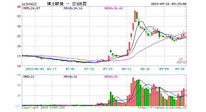 9月26日,博士眼镜开盘跌4.91%,报24.77元。