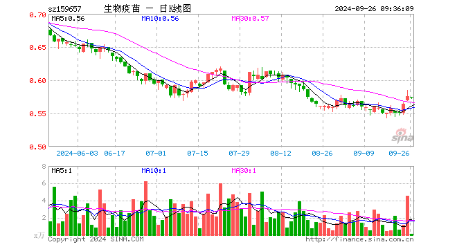 生物疫苗ETF(159657)开盘跌0.35%,重仓股智飞生物跌0.74%,复星医药涨0.04%