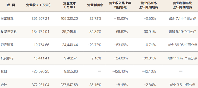 这其中,营业利润唯一超过10亿元的分项就是“投资与交易”。