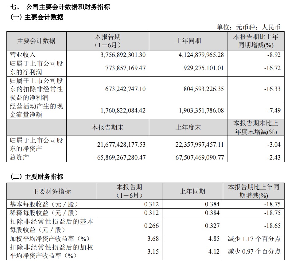 2024年上半年,深高速实现营业收入37.57亿元,同比减少8.92%,主要为路费收入、特许经营安排下的建造服务收入及工程委托建设管理服务收入同比有所减少;归属于母公司股东的净利润7.74亿元,同比下降16.72%,主要为所持参股公司股权公允价值变动及计提的资产减值损失增加所致。