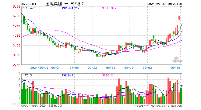 9月30日,金地集团开盘涨10.06%,报5.47元。