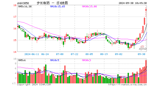 9月30日,步长制药开盘涨3.67%,报17.5元。