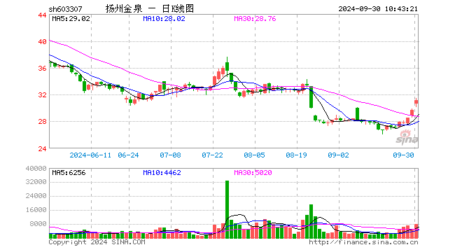 9月30日,扬州金泉开盘涨3.06%,报30.62元。