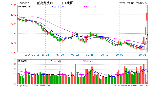 9月30日,医药龙头ETF(515950)开盘涨4.33%,报0.867元。医药龙头ETF(515950)重仓股方面,迈瑞医疗开盘涨6.03%,恒瑞医药涨3.12%,药明康德涨10.00%,片仔癀涨4.51%,爱尔眼科涨9.35%,联影医疗涨3.51%,科伦药业涨3.00%,长春高新涨7.76%,东阿阿胶涨3.47%,爱美客涨17.15%。