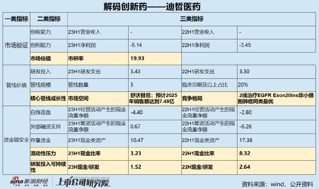 为此,新浪财经上市公司研究院梳理了部分代表创新药企,从业绩表现、研发投入、融资能力、现金流、Ⅲ期临床管线及上市药品占比……试着从市场验证、管线价值、资金流安全三大维度,绘制出创新药企全景图,解码国内创新药企价值与可能风险,本期标的为迪哲医药。