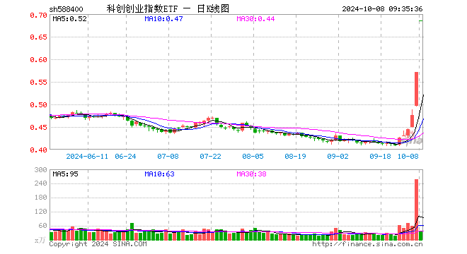 10月8日,科创创业指数ETF(588400)开盘涨19.96%,报0.685元。科创创业指数ETF(588400)重仓股方面,宁德时代开盘涨17.51%,迈瑞医疗涨20.00%,中际旭创涨19.98%,汇川技术涨20.00%,中芯国际涨20.00%,阳光电源涨16.47%,海光信息涨20.00%,中微公司涨20.00%,金山办公涨20.00%,澜起科技涨20.01%。