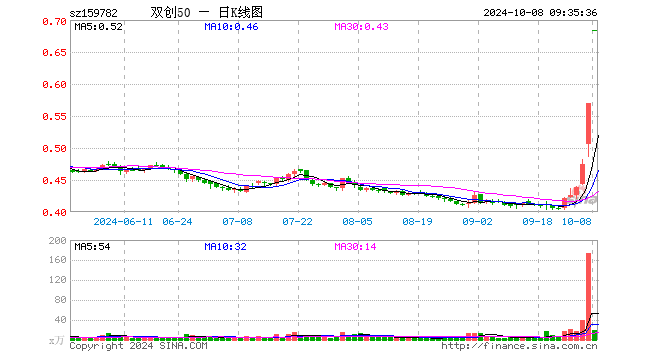 10月8日,双创50ETF(159782)开盘涨20.00%,报0.684元。双创50ETF(159782)重仓股方面,宁德时代开盘涨17.51%,迈瑞医疗涨20.00%,中际旭创涨19.98%,汇川技术涨20.00%,中芯国际涨20.00%,阳光电源涨16.47%,海光信息涨20.00%,中微公司涨20.00%,金山办公涨20.00%,澜起科技涨20.01%。