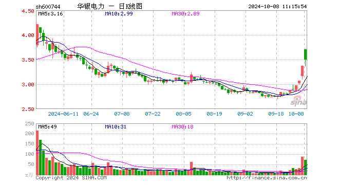 10月8日,华银电力开盘涨9.79%,报3.7元。