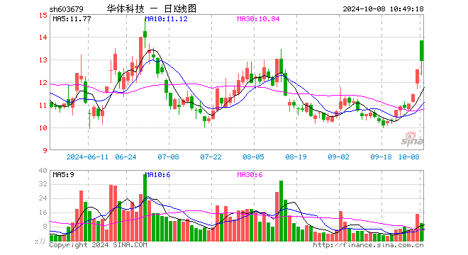 10月8日,华体科技开盘涨10.03%,报13.82元。