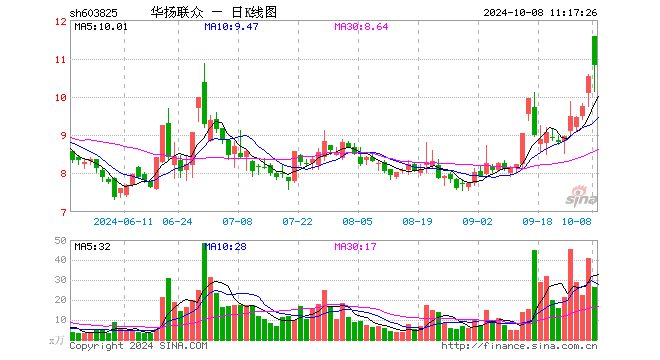 10月8日,华扬联众开盘涨9.97%,报11.58元。