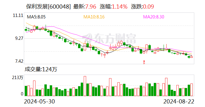 | 600048 | 保利发展 | 5 | 7.85 | 7.96 | -1.38 | 1900.00万 | 1.49亿 | 15.14 |
