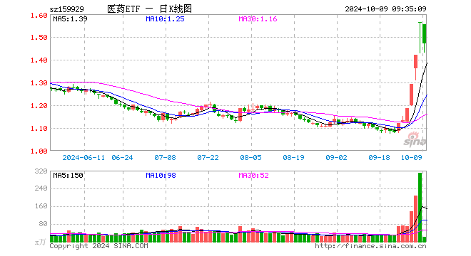10月9日,医药ETF(159929)开盘跌0.51%,报1.555元。医药ETF(159929)重仓股方面,迈瑞医疗开盘跌1.39%,恒瑞医药跌1.80%,药明康德跌0.12%,片仔癀跌2.49%,爱尔眼科跌8.33%,云南白药跌1.08%,上海莱士跌1.60%,联影医疗跌3.16%,新和成跌1.90%,智飞生物跌2.65%。