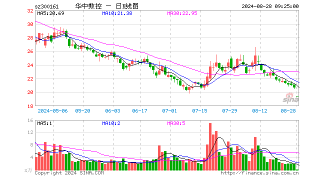 8月28日,华中数控开盘跌6.35%,报19.32元。