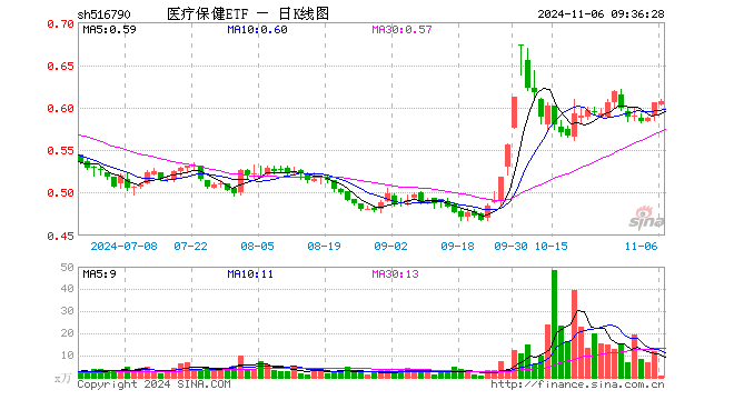 医疗保健ETF(516790)开盘跌0.50%,重仓股爱尔眼科涨0.00%,迈瑞医疗涨0.00%