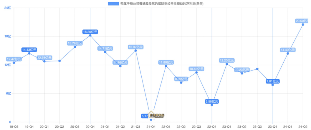 其中Q2营收76.03亿元,同比+33.95%;归母净利润20.63亿元,同比+92.94%;扣非归母净利润20.50亿元,同比+100.32%。