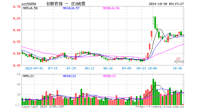 10月30日,创新药ETF基金(159858)开盘跌0.52%,报0.573元。创新药ETF基金(159858)重仓股方面,恒瑞医药开盘涨0.00%,药明康德跌0.90%,智飞生物跌0.82%,科伦药业跌0.52%,泰格医药跌1.99%,长春高新跌0.09%,复星医药涨1.00%,万泰生物涨0.12%,华东医药跌0.09%,康龙化成跌0.53%。
