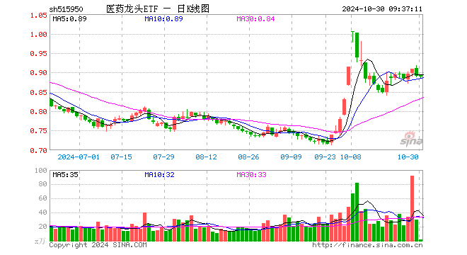 10月30日,医药龙头ETF(515950)开盘涨0.11%,报0.892元。医药龙头ETF(515950)重仓股方面,恒瑞医药开盘涨0.00%,药明康德跌0.90%,迈瑞医疗跌4.08%,片仔癀跌0.34%,爱尔眼科跌0.88%,联影医疗跌0.45%,科伦药业跌0.52%,爱美客跌1.29%,长春高新跌0.09%,万泰生物涨0.12%。