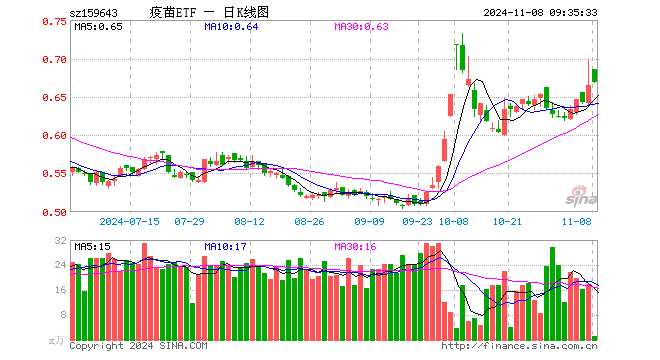 11月8日,疫苗ETF(159643)开盘涨3.16%,报0.686元。疫苗ETF(159643)重仓股方面,智飞生物开盘涨2.81%,复星医药涨0.91%,长春高新涨1.83%,万泰生物跌0.04%,沃森生物涨1.79%,华兰生物涨1.42%,丽珠集团涨0.21%,康泰生物涨1.01%,恒瑞医药涨0.20%,药明康德涨2.01%。