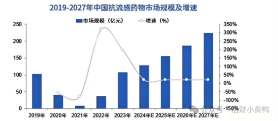 图1 2019-2027年中国抗流感药物市场规模及增速