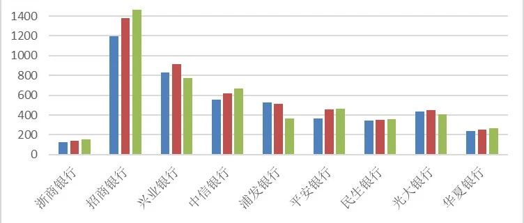 净利润来看,浙商银行分别增长2.75%、7.67%以及10.5%,招商银行虽然稳定增长,但2023年增幅6.05%不足浙商银行,浦发银行业绩更是下滑近30%,兴业银行也下滑了15.61%。